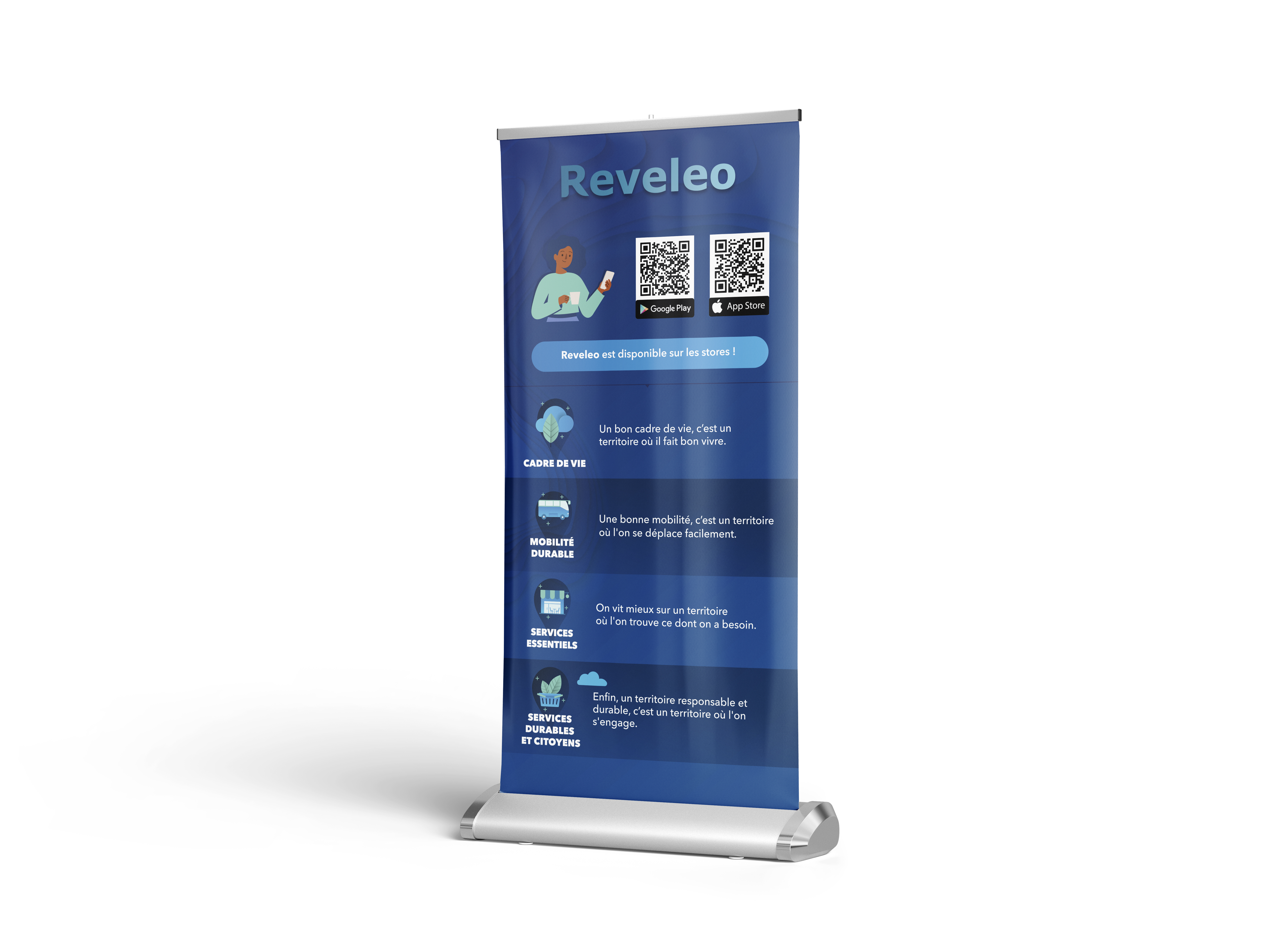 Supports roll-up grand format pour salons, foires et événements. Visibilité et impact maximum.